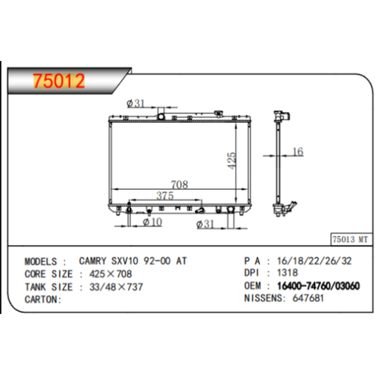 টয়োটা ক্যামরি 92-96 অটো রেডিয়েটর |